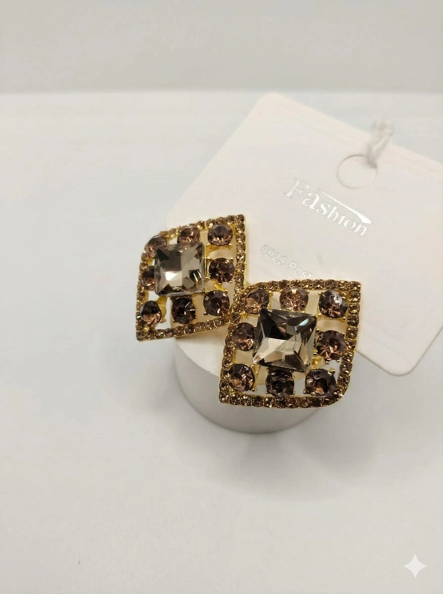 PAIR BROWN STONE GOLD PLATED EZ-1178PB2505090070272