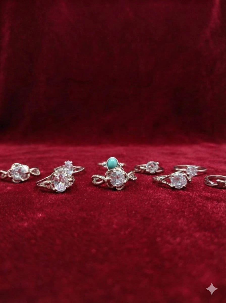 9 RINGS SET 30GMS ZINC ALLOY GLASS STONES J0937-PB250512006808