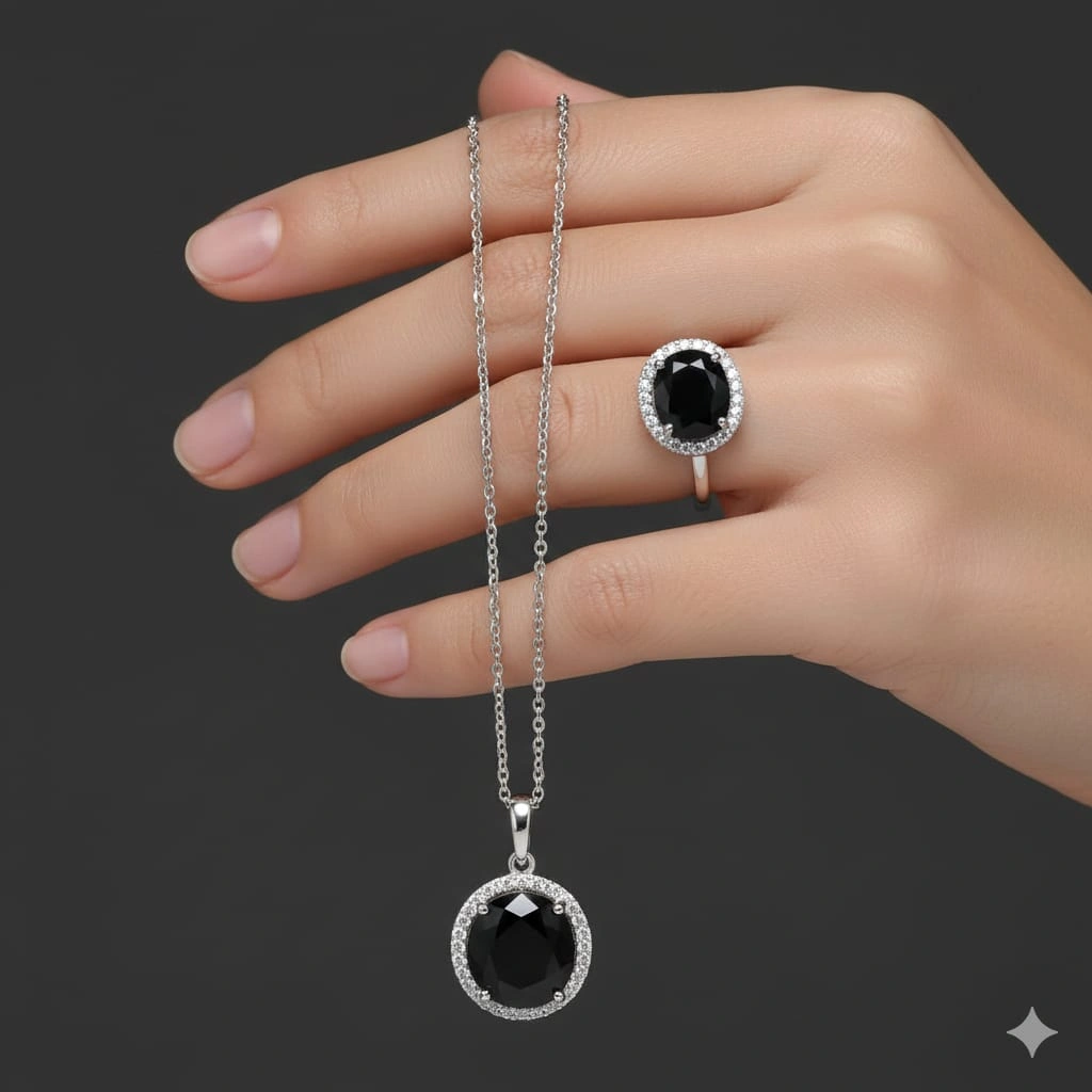 RING PENDANT & CHAIN COPPER BLUE STONE ZARCONIA
