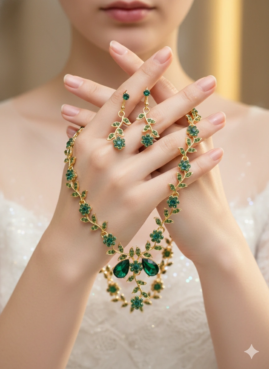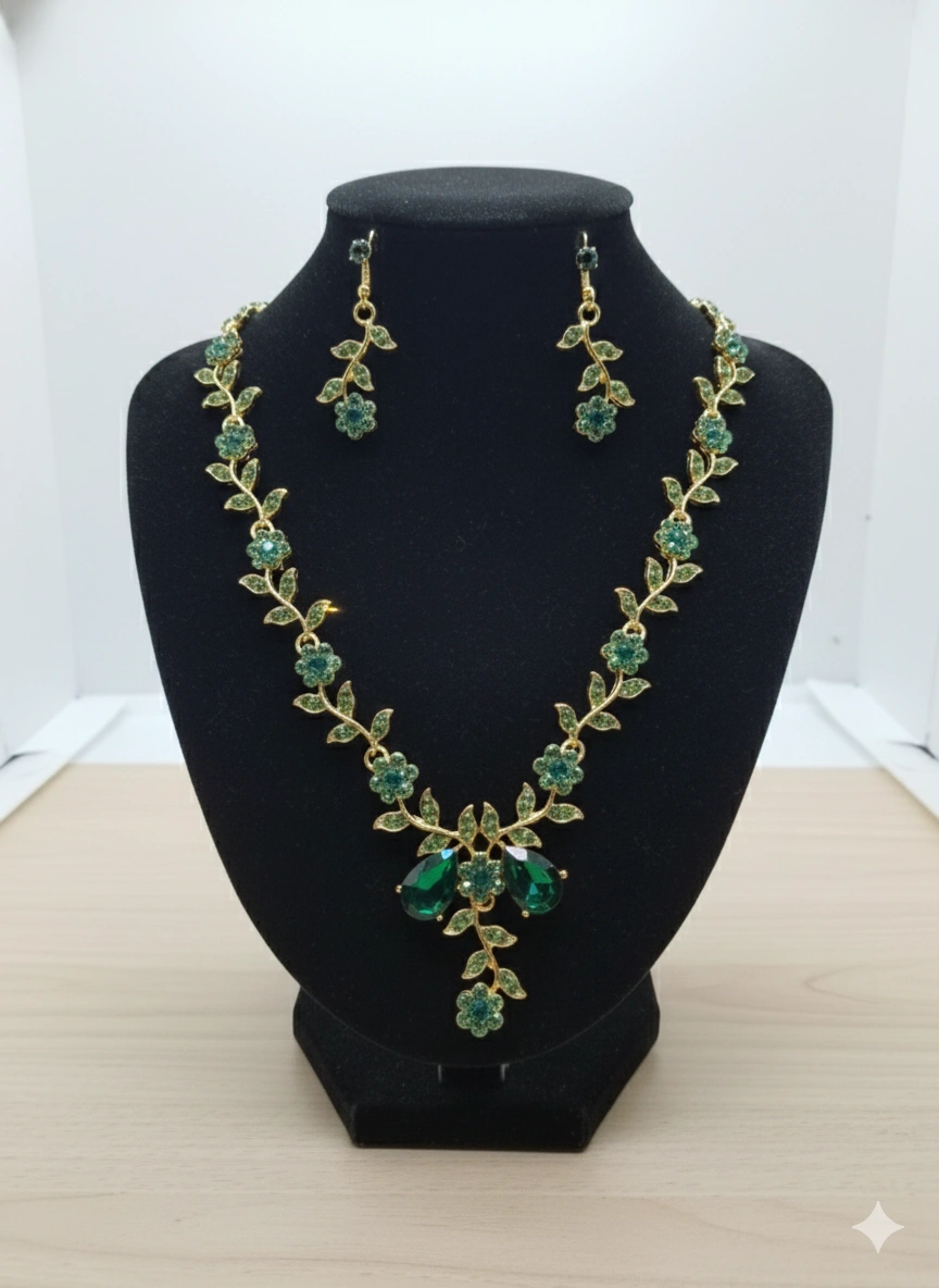SET GREEN STONE GOLD PLATED L415874P032503140119895